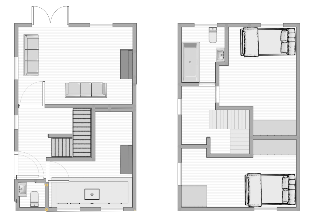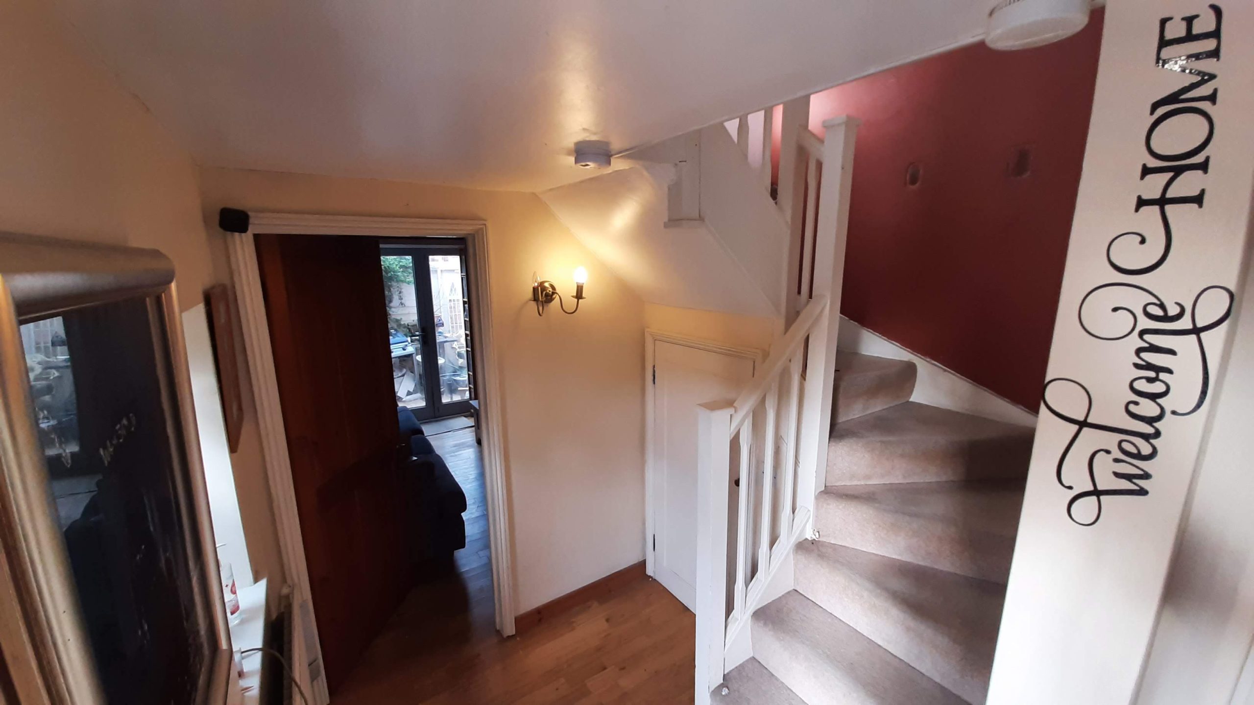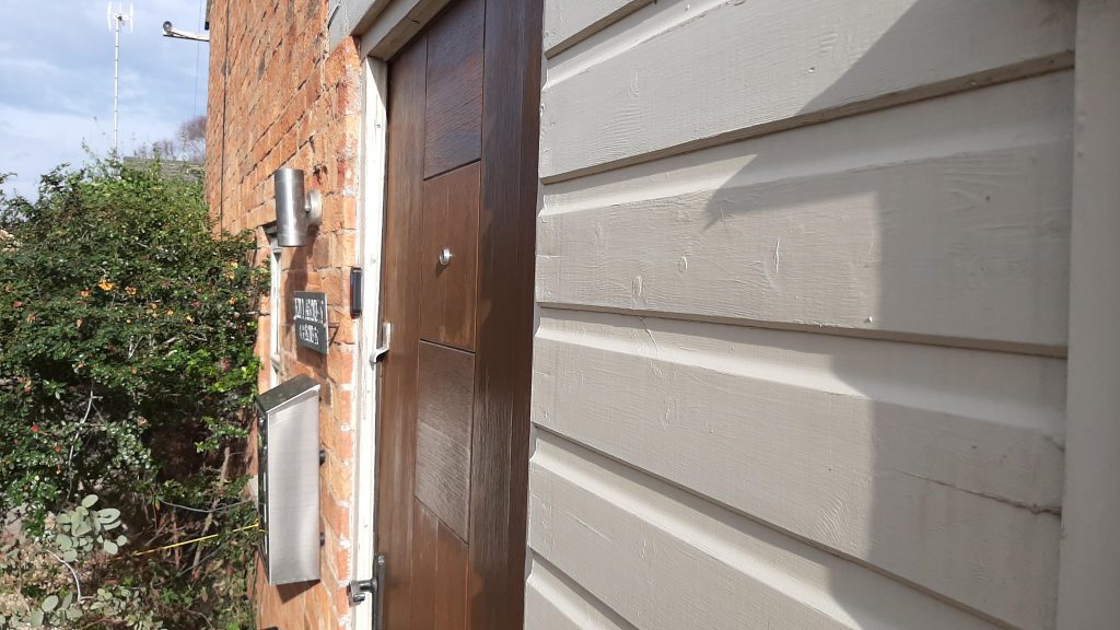 Outside The rear terrace accessed from the lounge adjoining the French doors is a paved terrace garden with sitting area. Door 1 leads to a utility room and storage room. – a brick built utility room which houses the washing machine and the tumble dryer. Currently used as a tool storage room. Also off the courtyard there is a small bike shed that is built om to the house and wall which can store two bikes. In the corner of the courtyard there is a third ‘magic’ door which leads to a fully heated