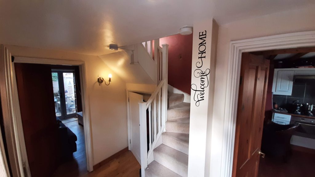 Killarney Corner is approached off the road behind an Oak front door, opening to the entrance hall with turning staircase rising to the first floor. A useful under stairs storage cupboard, Gas central heating radiators windows to the front the ground floor cloakroom with a low flush WC wash hand basin and wall mounted Worcester gas fired Combi boiler which was installed new in 2021.