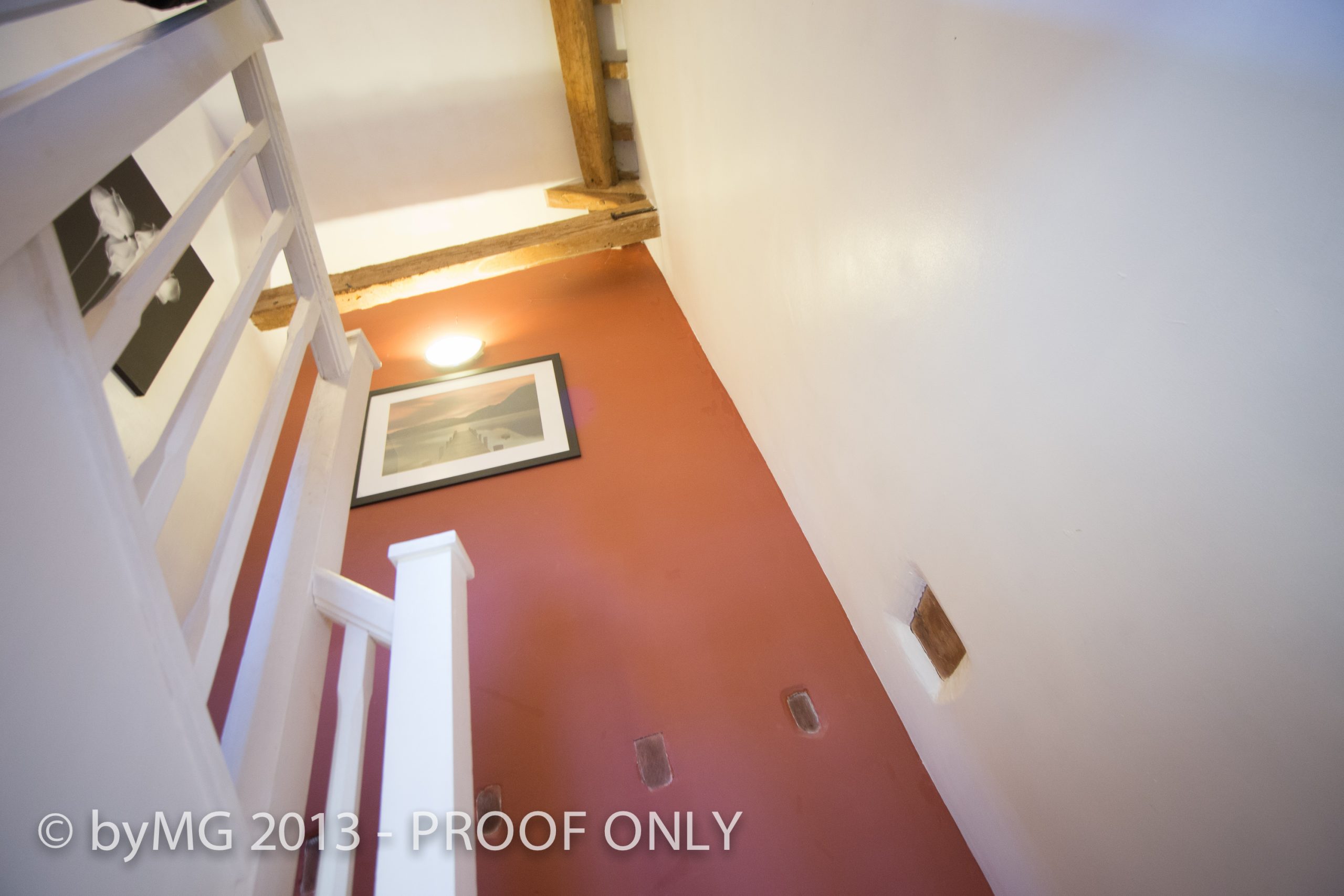 On the first floor a turning staircase from the entrance hall to the first floor landing with the window to the front, a roof hatch for loft space and exposed roof timbers.